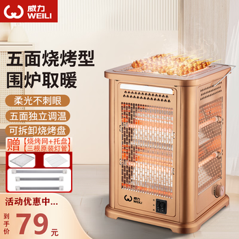 威力(WEILI) 烤火炉取暖器家用节能五面烤火器四面烧烤型小太阳电暖器电烤炉取暖电炉子速热电火炉子 中款丨无极控温【加备用灯管】 -