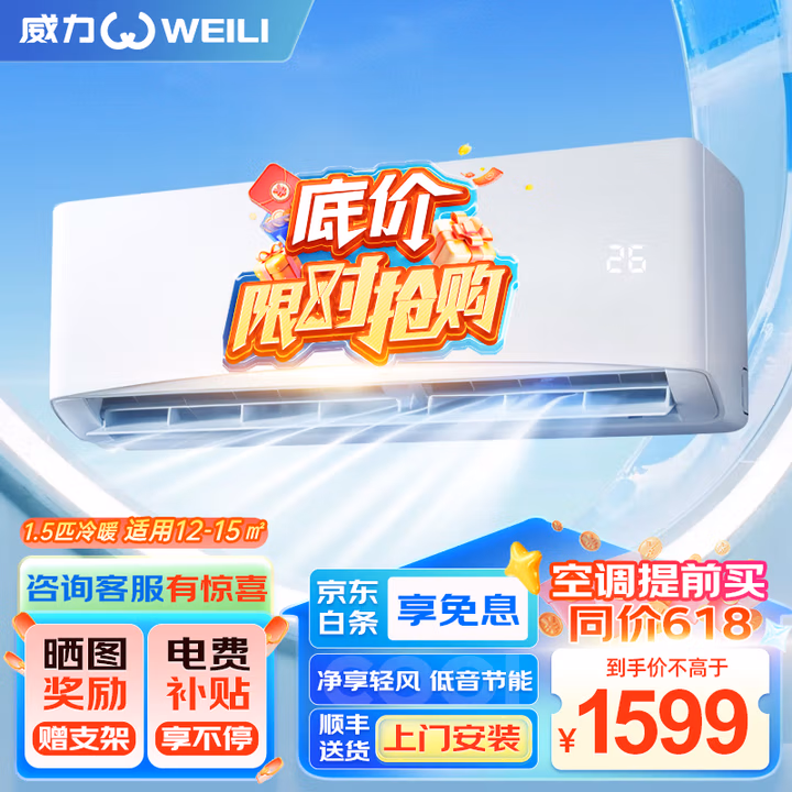 威力(WEILI)空调1.5匹 空调挂机 冷暖空调 新能效 节能省电 卧室出租房宿舍 家用壁挂式 KFRd-36GW/A1+15P3a -
