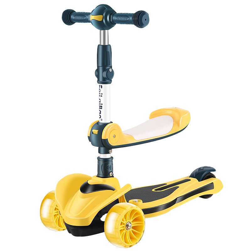 嘻优米【带音乐灯光】滑板车儿童玩具2-12岁可坐三轮小孩折叠童车男女孩生日六一儿童节礼物 【带音乐灯光】【可坐可滑】【加大置脚挡泥板】黄绿款