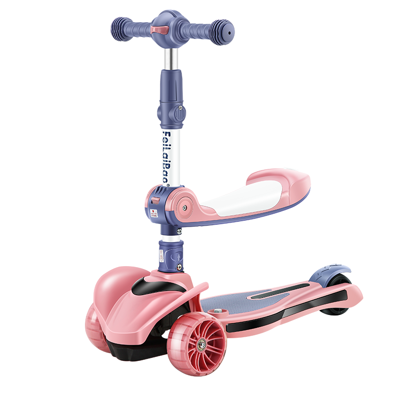 嘻优米【带音乐灯光】滑板车儿童玩具2-12岁可坐三轮小孩折叠童车男女孩生日六一儿童节礼物 【带音乐灯光】【可坐可滑】【加大置脚挡泥板】粉紫款
