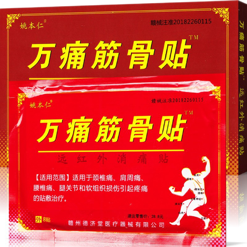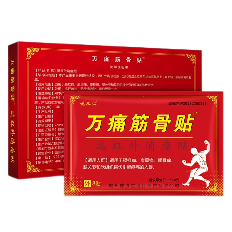 姚本仁万痛筋骨贴肩周炎腰肌劳损腰椎间盘突出膏贴膝盖疼肩颈腰腿腱鞘炎关节骨质增生跌打损伤风湿足跟痛贴 一袋8贴10045459087724
