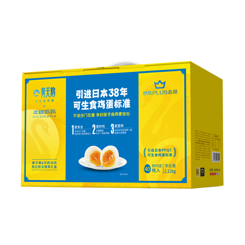| 黄天鹅X京东PLUS会员X年糕妈妈限定联名款 | 40枚鲜鸡蛋 2.12kg/盒 | 健康轻食,不含沙门氏菌 | 臻享礼盒装,包邮 |