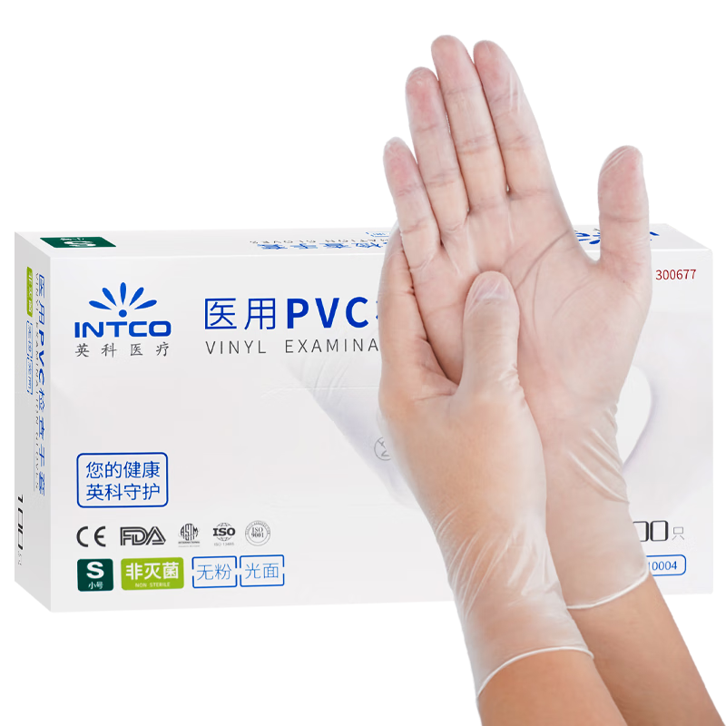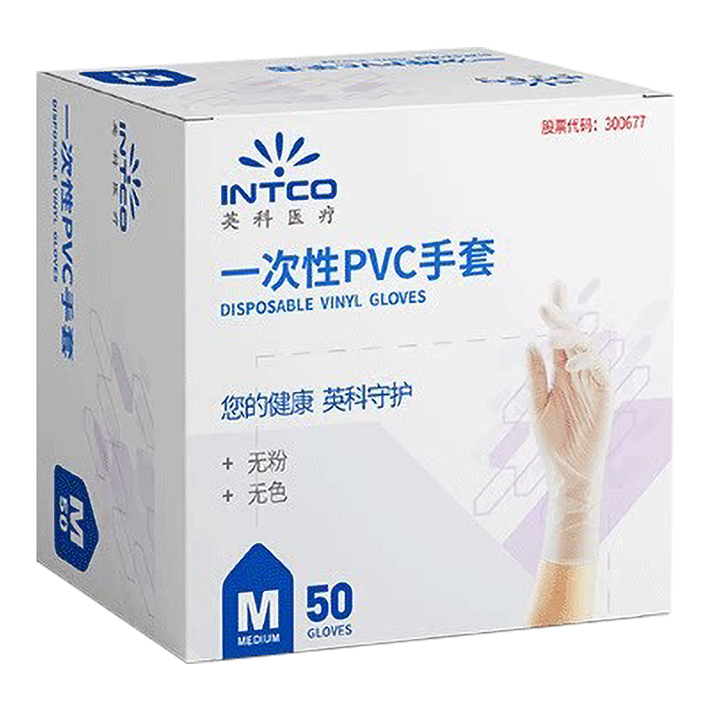 英科医疗(INTCO)一次性PVC手套食品级医务实验室美容餐饮劳保防护检查手套100只中码M -