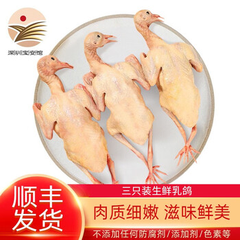深珍 生鲜鸽子肉 精选优质乳鸽 新鲜活体宰杀 农家白羽鸽 现杀3只 鸽子 杀前约1800g左右 3只现宰乳鸽62762545104