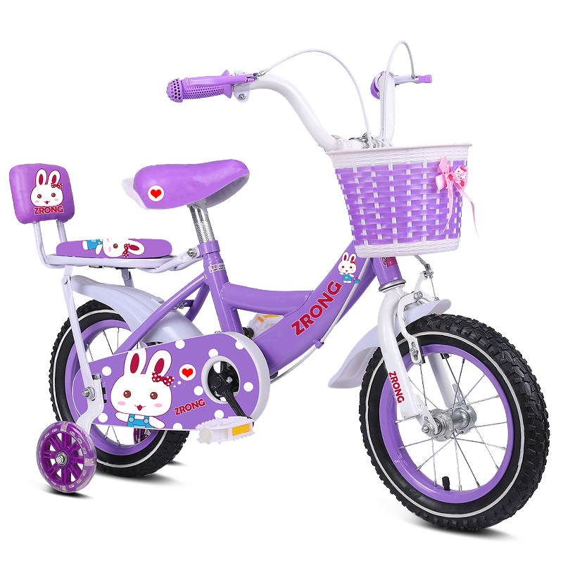 紫榕 儿童自行车女孩单车3-4-5-6-7-8-10岁公主款脚踏车男女宝宝小孩童车 紫色+闪光轮+护具+靠背 14寸