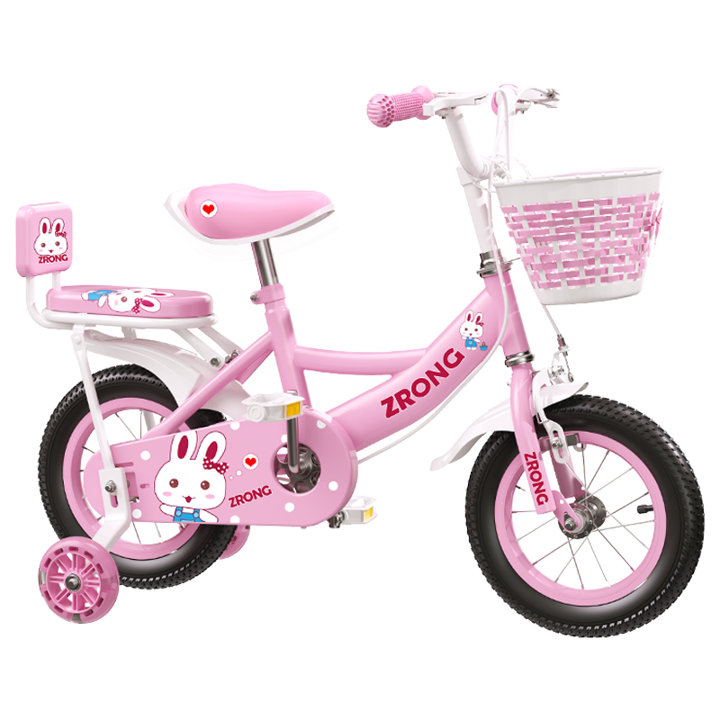 紫榕 儿童自行车女孩单车3-4-5-6-7-8-10岁公主款脚踏车男女宝宝小孩童车 粉色+闪光轮+护具+靠背 12寸