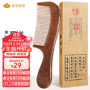 紫韵梳香加长密齿款整料黄桃木梳子女士男士长发短发通用 M-11 -
